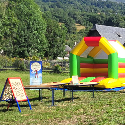 Le tout est installé sous tente Circus, avec un château gonflable couvert et sonorisation, pour une ambiance festive prête à l’emploi.
